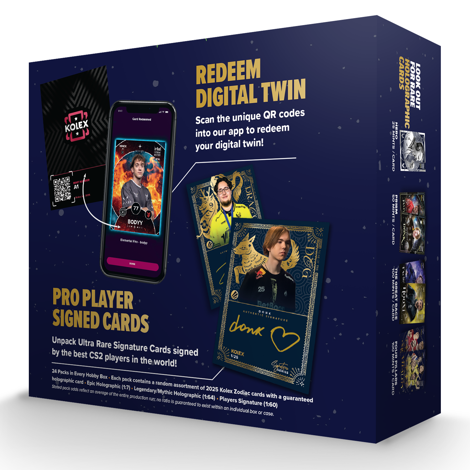 The Zodiac Digital collection will be found under the CS2 China Product Page in the Kolex app. The cards from the Zodiac collection count only toward the China 2025 Leaderboards and will not be factored into the current Season 2025 CS2 Leaderboard.